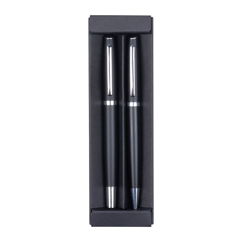 Psací sada vyrobená z recyklovaného hliníku, obsahující kuličkové pero a roller. Minimalistický design v kombinaci s modrou náplní typu semi-gel (0,7 mm) zajišťuje plynulé a pohodlné psaní.