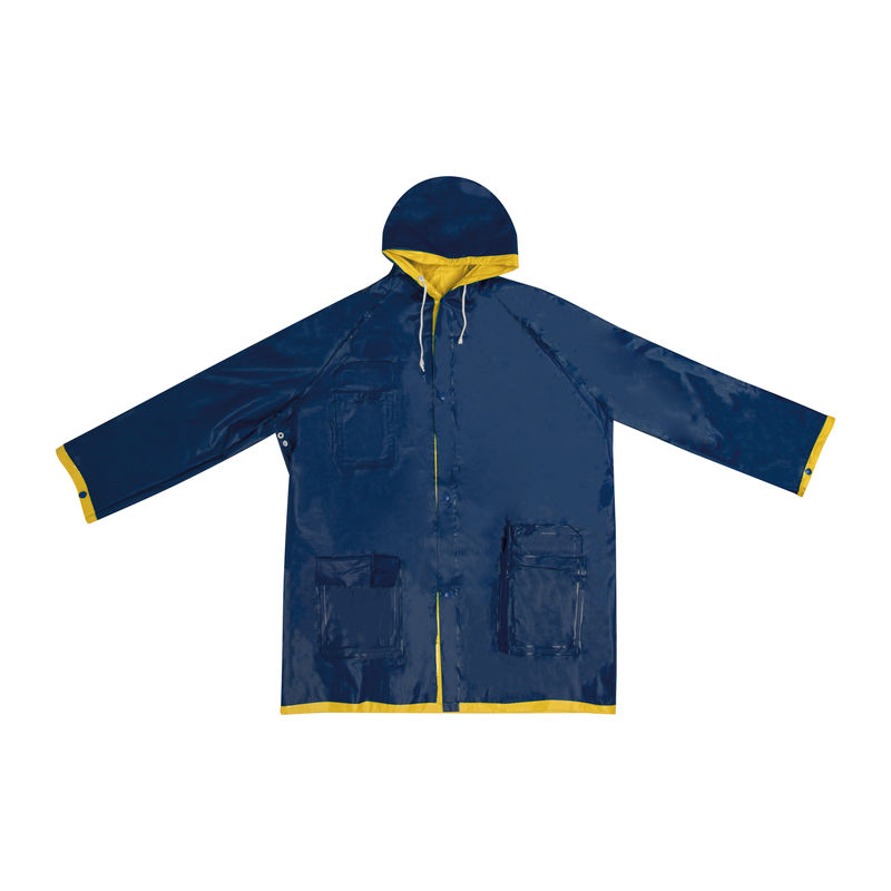 Oboustranná pláštěnka s kapucí a dvěma velkými kapsami. Dostupná v několika barevných variantách. Neobsahuje ftaláty.