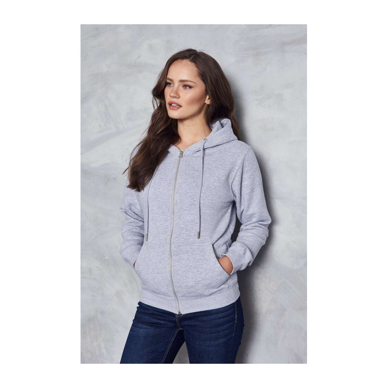 Mikina z 80 % organické bavlny a 20 % recyklovaného polyesteru. Celopropínací model s kapucí a kovovým zipem YKK, kapucí z dvojitého materiálu, klokánkovými kapsami a odtrhávacím štítkem. Gramáž 280 g/m².