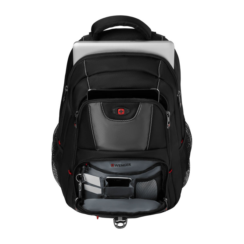 Vhodný pro většinu 16palcových notebooků. Kapsa SWISSGUARD pro notebook zajišťuje bezpečné uložení. Prodyšné zádové polstrování Air-Flow zvyšuje odvětrání a komfort. Ramenní popruhy Comfort Fit zajišťují pohodlné nošení. Stabilizační platforma ve spodní části pouzdra zvyšuje stabilitu při odkládání.