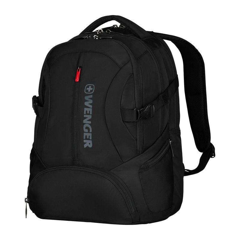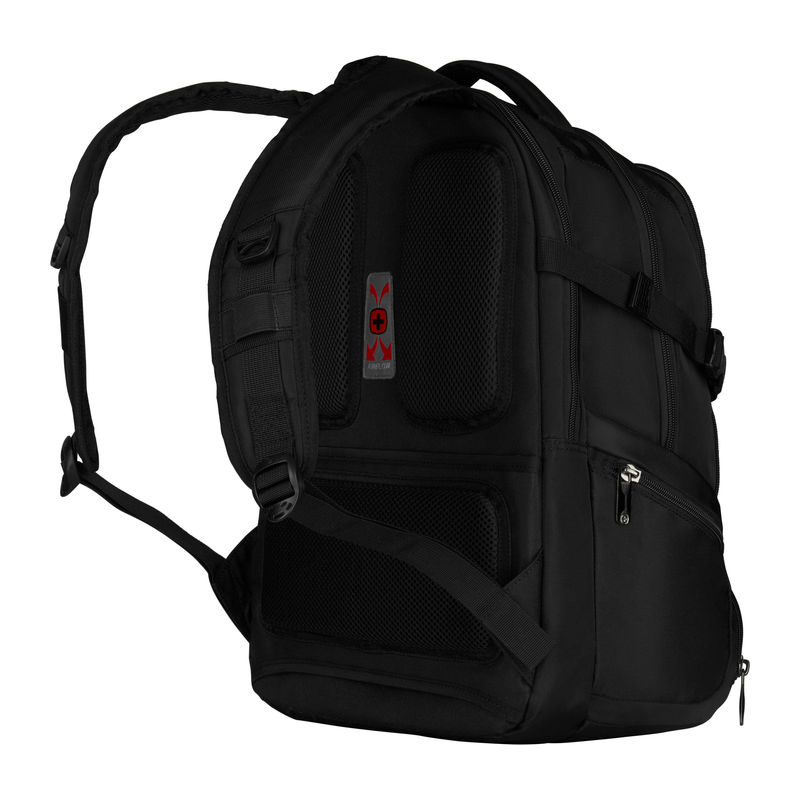 Batoh pro notebook o úhlopříčce 16" s kapsou na tablet o úhlopříčce 10", stabilizační platformou, větraným zádovým polstrováním, komfortně tvarovanými ramenními popruhy, poutkem pro uchycení na teleskopické madlo cestovního kufru a postranní kapsou na zip.