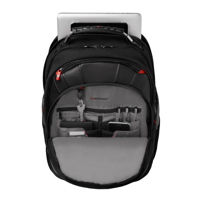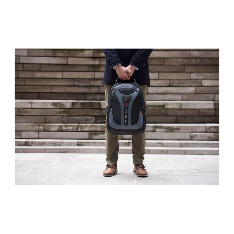 Účinně chrání notebooky až do velikosti 17 palců. Obsahuje kapsu pro rychlý přístup ke klíčům, telefonu apod., prodyšné polstrování zad umožňující proudění vzduchu, stabilizační platformu, která udržuje batoh ve svislé poloze, zesílené ergonomické madlo a ramenní popruhy pohlcující nárazy.